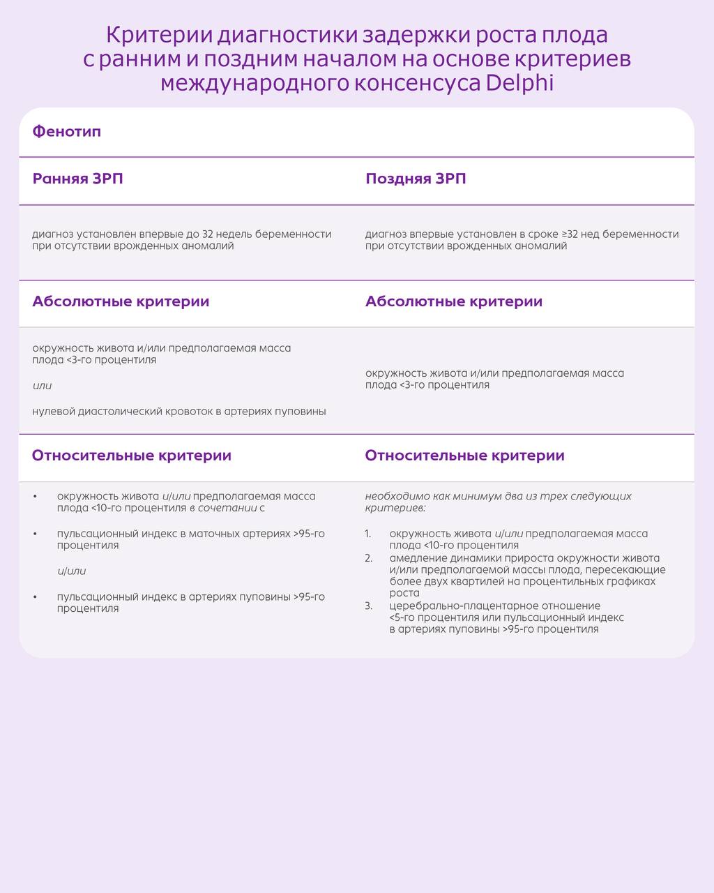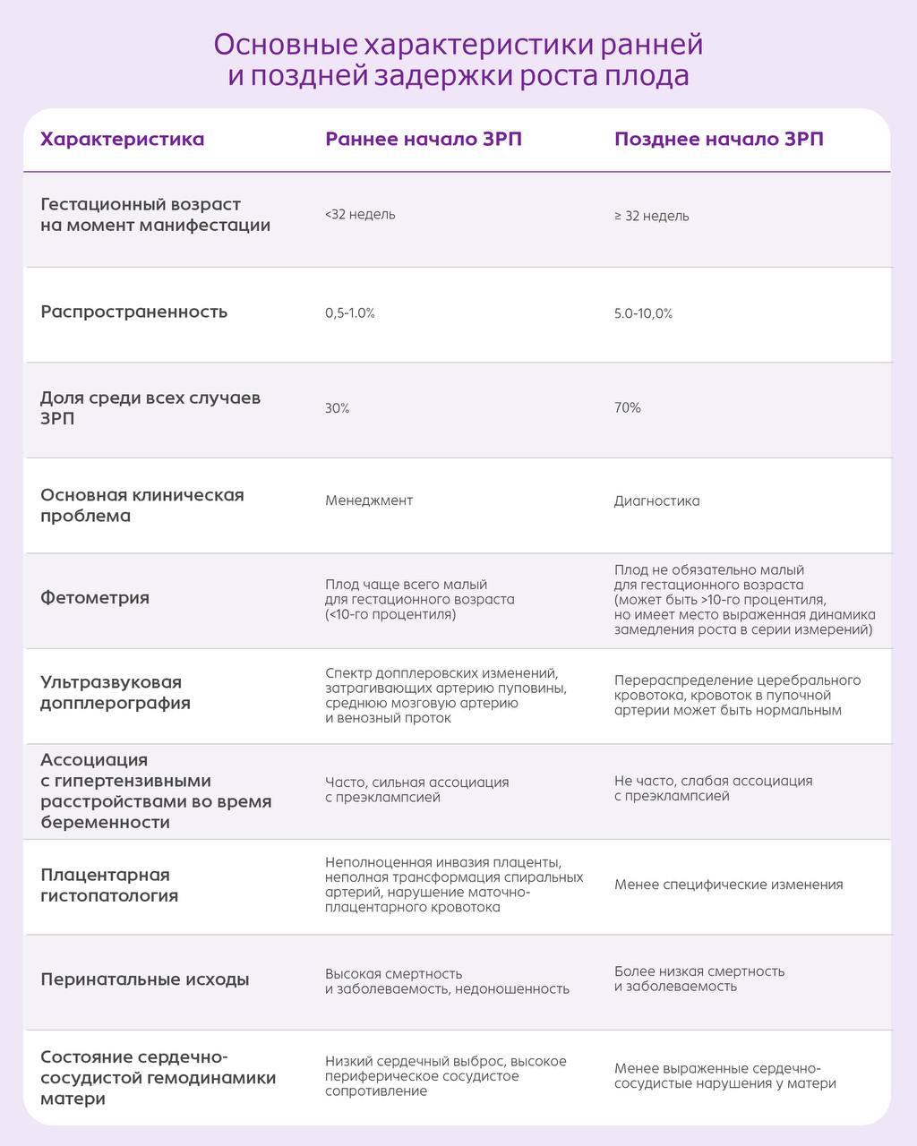 Поздняя ЗРП (манифестация после 32 недель) встречается чаще, но ее важно вовремя диагностировать. Плод может демонстрировать тревожное замедление роста в динамике, несмотря на конституционально приемлемые размеры.